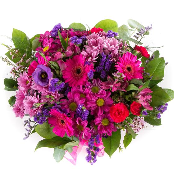 One of our most popular bouquets, a vibrant, seasonal mix of pretty pinks and purples.