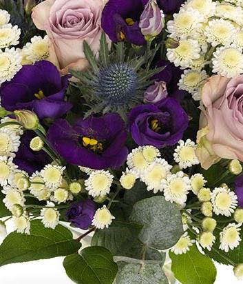One of our many expert florists will personally create your bouquet using the finest and freshest Purple, lilac and white stems. The flowers are hand-picked and hand-crafted for the best possible gift. Our florists may substitute flowers and sundries for a suitable alternative, similar in style, quality and value depending on availability
