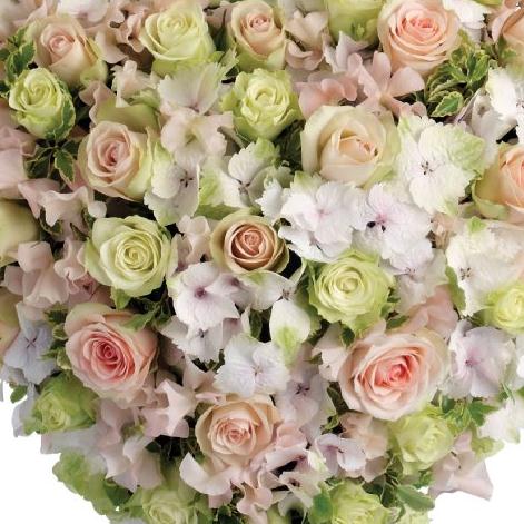 A beautiful heart in the softest of pink and cream shades, including roses and other seasonal flowers. Content may vary due to availability .